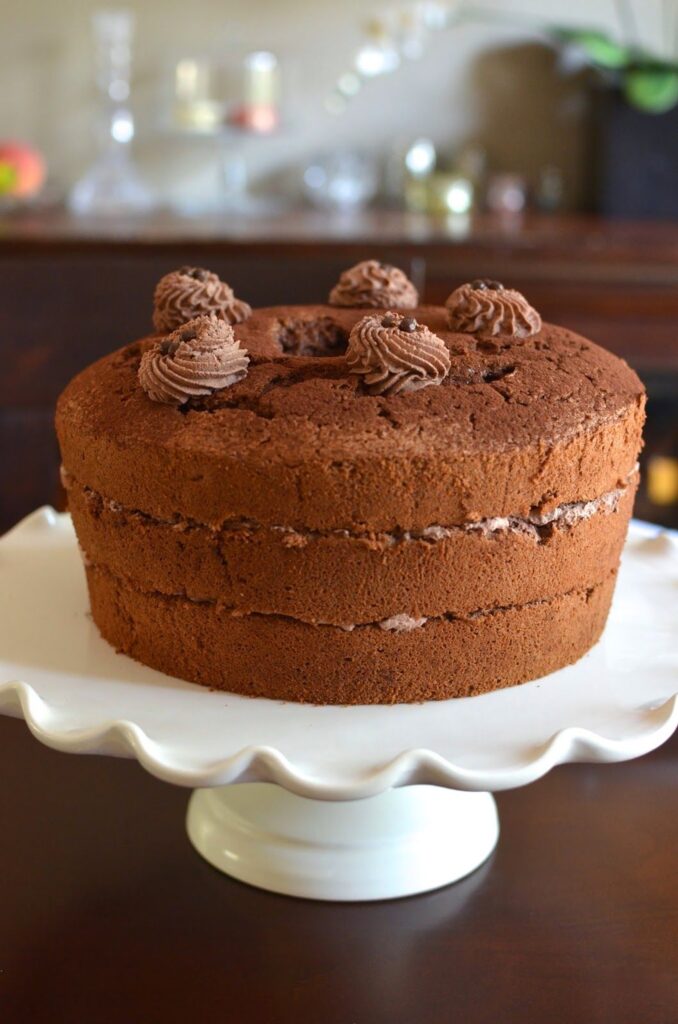 2. Chocolate Chiffon Cake by Paprika Gourmet: You might have commonly heard of airy vanilla chiffon cakes, but this chocolate version by Paprika Gourmet quite literally takes the cake! It is airy, with a light chocolate whipped cream frosting, brushed with ganache, and great for celebrations.